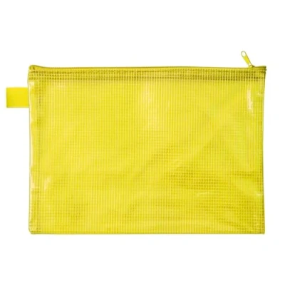 The storage bag has the format DIN A5 (235 x 180 mm) and has a practical loop The bag with zip has a thickness of 260 µm and is made from a fabric-reinforced EVA material (PVC-free) The document folder can also be used in wet areas thanks to the water-repellent material It is in yellow and is suitable for cosmetics, pens, charging cables, etc. The zip pocket is ideal for everyday use, but also a practical companion for travel and on the go