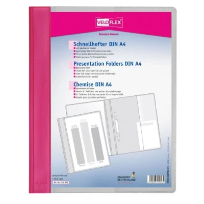 Veloflex 4741070 File Folder A4 PVC Film with 2 Transparent Pockets Pink