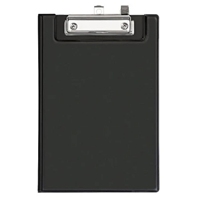 with write protection with flexible metal pen loop and hanging loop Special clamp with rubber corners, suitable for approx 100 sheets of 80gm paper Made of: PVC film slightly grained