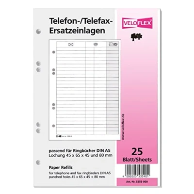 Veloflex 5359000 Replacement Insert for Telephone Ringbinder Folders A5 25 Sheets Cardboard (German design)