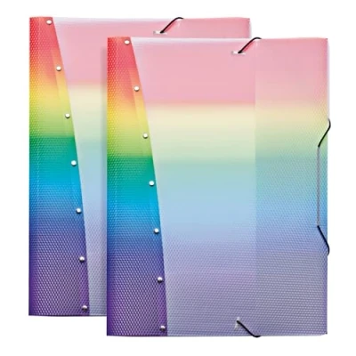 The folder for documents in DIN A3 format is designed with colourful rainbow colours The three flaps on the bottom lid prevent the contents from falling out Made from durable PP solid plastic with distinctive surface structure, the document folder is particularly durable The stretchy elastic band on the folder provides strong hold even under heavy use It is ideal for storing and transporting documents, documents and loose sheets