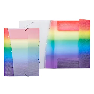 The folder for documents in DIN A3 format is designed with colourful rainbow colours The three flaps on the bottom lid prevent the contents from falling out Made from durable PP solid plastic with distinctive surface structure, the document folder is particularly durable The stretchy elastic band on the folder provides strong hold even under heavy use It is ideal for storing and transporting documents, documents and loose sheets