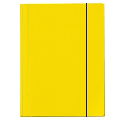 DIN A4 (size 230 x 320 x 15 mm) Glossy laminated cardboard With 3 flaps With elastic closure Colour: yellow