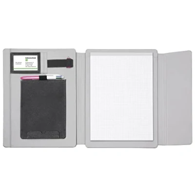 Tablet organiser with magnets in the flap for closing Adjustable tilt of the tablet holder with Velcro fastener Suitable for all standard tablets up to 12.9 inches (32, 7 cm). Also equipped with a pen loop, 3 rubber loops for cables, USB stick or similar, 2 business card slots, compartment for tablet with textile to prevent scratching of the tablet, as well as a pocket for a writing pad and additional compartment for documents on the back International products have separate terms, are sold from abroad and may differ from local products, including fit, age ratings, and language of product, labeling or instructions.