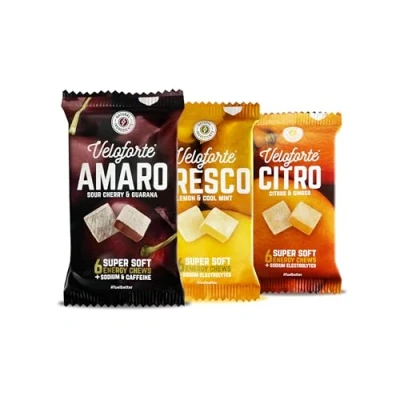 Veloforte Energy Chews Super soft, 44g carbs, Electrolytes, Natural Alternative to Drinks, Gels, Fast Nutrition for Running, Cycling, Endurance, Vegan Bloks (9 Pack)