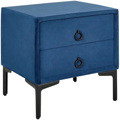 Velvet Bedside Table Nightstand Blue 2 Storage Drawers Black Metal Legs Sezanne