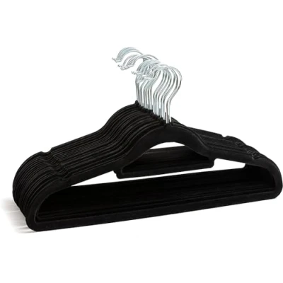 Velvet Hangers, 41.5 cm Wide, SPACE Saving, High Load Capacity, with 360 Swivel Hooks, for Coats Shirts Suits, SLIM HANGER, SAVING Pink, Grey and Black. (Black, 10)