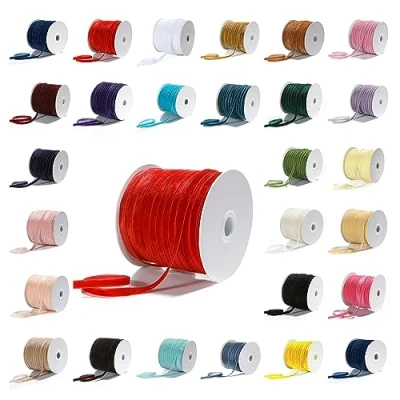7mm Velvet Ribbon; Same Quality as our 10/19/25mm Sizes, Luxurious Handle and meets ISO Oeko Standard. Machine Washable Use a Jewellery Making Cord Ribbon, Thonging for Apparel and Lingerie or Decoration and Crafts Sold as Packs of 5 Yards (More than 5 Yards are sold as Multiple packs of 5 Yards), or Full Reels of 60 Meters, 32 Colours; Complements or 10mm 19mm and 25mm Sizes, which are sold on a Separate listing – check our storefront View our shop on Amazon before checkout to see the most exclusive and extensive collection of Ribbons, Indian Trimmings collection, Garment accessories and our UK made RIB fabrics and Knitted Jerseys.