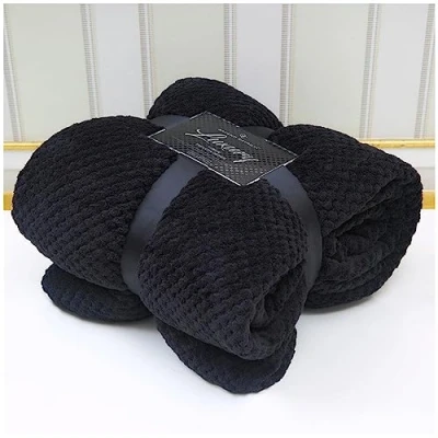 VELVETIO Luxury Waffle Fleece Popcorn Throw, Extra Large Thermal Warm Honeycomb Blanket, Soft & Cosy 100% Polyester Snuggle Sofa Bed Throws, 150 x 200cm, Black