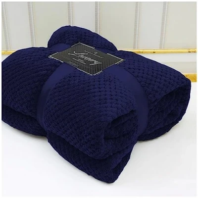 VELVETIO Luxury Waffle Fleece Popcorn Throw, Extra Large Thermal Warm Honeycomb Blanket, Soft & Cosy 100% Polyester Snuggle Sofa Bed Throws, 150 x 200cm, Navy
