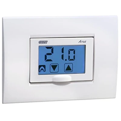 VEMER VE458600 Model AROS Weekly Thermostat with Touch Screen Display and Battery Supply. Flush mounting, Color White/Anthracite Grey