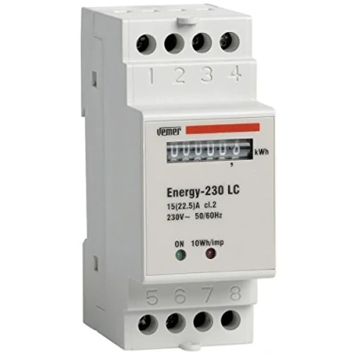 VEMER VN960100 Model Energy 230 LC DIN Rail mounting Meter to Display Active Consumption in Single Phase Systems. Direct max Current 22,5A