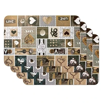 Venilia Country Love 59068 Place Mats for Dining Room, Set of 4, Wipe Clean, Polypropylene, Food Safe, 45 x 30 cm, 4