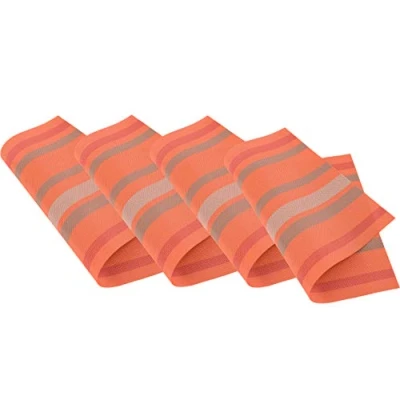Venilia Placemat Table Linen Placemats for Dining Room Woven Stripes Orange Wave Pattern Fabric Set of 4 Vinyl Food Safe Pieces 45 x 30 cm 59032