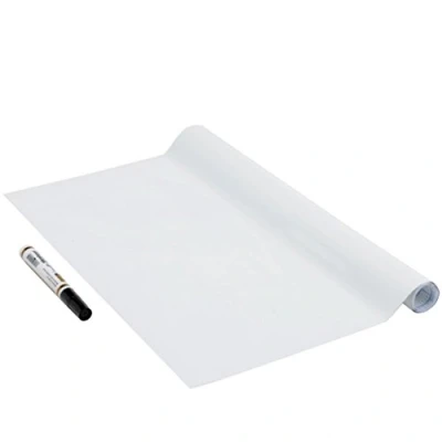 Vénilia Whiteboard Film Including Marker, Blackboard + Pen, Fridge Board, White, 45 cm x 1.5 m, Thickness 150μ, Multifunctional Board Film, White Kitchen Phthalate Free, Made in EU