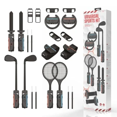 Complete 10-in-1 sports accessory pack – Includes steering wheels, golf clubs, tennis rackets, swords and leg straps to add realism and excitement to Nintendo Switch 2 and Nintendo Switch sports games. Perfect for popular titles – Enhance gameplay in Nintendo Switch Sports, Mario Kart 8 Deluxe, Mario Tennis Aces, Mario Golf: Super Rush and more, delivering a truly immersive and active gaming experience. Backward compatible design – Includes four original Nintendo Switch Joy-Con inserts for seamless use with older consoles and games, so you can enjoy both the latest releases and your classic favourites. Lightweight, durable and comfortable – Made from high-quality materials with ergonomic grips for extended play, each attachment is easy to handle and suitable for players of all ages and skill levels. Quick-fit connection system – Swap between accessories in seconds thanks to the simple push-fit design, keeping your gameplay flowing without interruption during intense sports matches or family fun., Platforms: Nintendo Switch 2