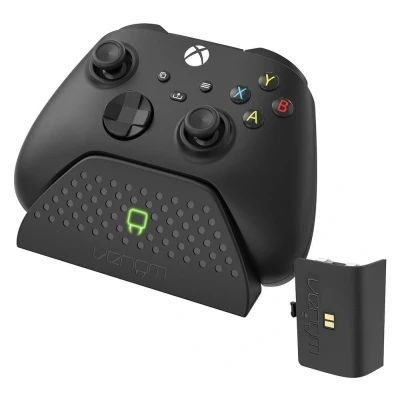 Keep your Xbox controller fully charged and on display with the Venom VS2880 Xbox Series X/S & Xbox One Docking Station.Designed to match the style of the Xbox Series X, it fits in seamlessly with your gaming setup.Simply attach the included rechargeable battery pack to your controller and place it on the dock to start charging. The red LED indicator will automatically turn green once it's reached full power.An additional USB port at the back means you can charge your gaming headset or phone, too.