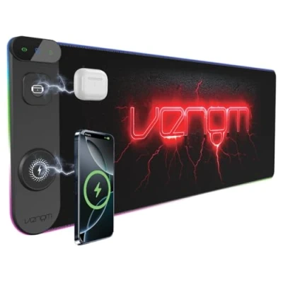 Venom LED Gaming Desk Surface with Wireless Charging USB C & A Ports 800 x 300 mm Extended Mouse Mat