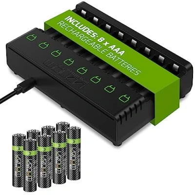 High capacity rechargeable batteries complete with intelligent charging dock Charging dock compatible with all AA and AAA rechargeable batteries and can charge any combination of AA or AAA batteries up to a maximum of 8 batteries at a time Batteries offer large 800mAh charge capacity for extra-long life before needing recharge and can withstand in excess of 500 full recharges per each battery lifetime Venom offers long lasting, reliable power with over 1 million battery packs sold in the UK alone Dock can also be used to charge any other branded AA and AAA rechargeable batteries