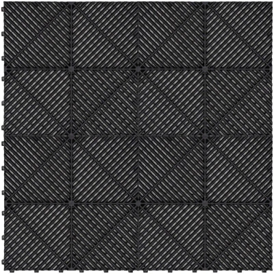 Vented Modular Interlocking Flooring Tiles & Edges 120 x Black Single Garage Heavy Duty Floor Mat Showroom Workshop Outdoor Polypropylene Anti Slip Weather Resistant Drainage Channels 3.2m 6m 19.2m2