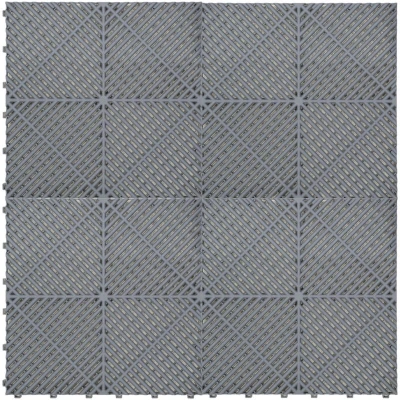 Vented Modular Interlocking Flooring Tiles & Edges 120 x Grey Single Garage Heavy Duty Floor Mat Showroom Workshop Outdoor Polypropylene Anti Slip Weather Resistant Drainage Channels 3.2m 6m 19.2m2