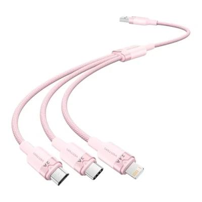 VENTION USB 2.0 A Male to 3 in 1 C & Lightning Micro B 3A Cable 1.5m Pink Aluminium Alloy Type