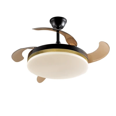 Net LightingCeiling fan with CCT DIMMABLE LED light made of metal finished in matt black and ring in GOLD LEAVES. Opal diffuser and smoke retractable blades, in acrylic. DC motor with 6 speeds and reverse. Adjustable light tonality. Timer.