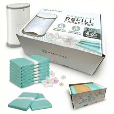 Universal Compatibility - Designed to fit Korbell 16L and most standard litter and nappy bins. Perfect fit and easy to install, ensuring no slipping or tearing during use. Long-Lasting Value - Includes 3 x 12-metre liners, giving coverage for up to 640 nappies per refill, ideal for busy homes, nurseries, or pet waste disposal. Leak-Proof & Durable Design - Made with tear-resistant, odor-blocking material to keep your nursery, bathroom, or litter area clean and fresh. Eco-Conscious & Convenient - Crafted from eco-friendly, strong plastic film, providing reliable performance while reducing waste and environmental impact. Venture Quality Guarantee - Venture Disposable Hero liners deliver trusted quality, superior strength, and consistent hygiene, making nappy disposal simpler and more hygienic every time.