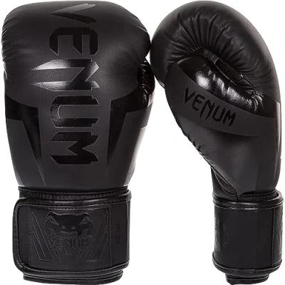 Venum Elite Adults Boxing Gloves, Black (Black Matt/Black), 10 Oz