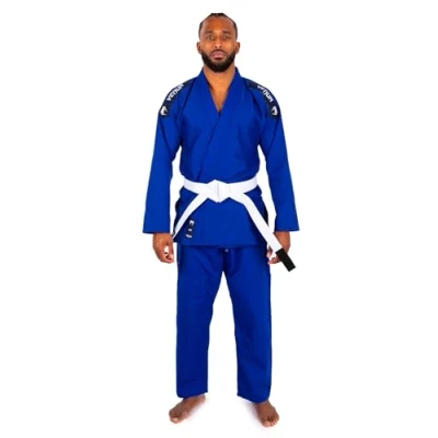 Jacket: Ultra-light pearl weave pre-shrunk fabric (52% polyester, 48% Cotton). Pants: 8 Oz ripstop, pre-shrunk fabric (52% Polyester, 48% Cotton) Reinforced stitching at the chest, knees, and crotch for durability. Easy-tie secure belt system Optimal moisture management. Venum logo patches White belt included Ideal for beginners