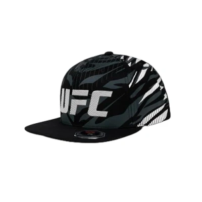 Cotton twill fabric Jacquard effect Snapback closure system (plastic fastener with pins) Heat-welded UFC logo with matte brushed metal effect Embroidered logos; Authentic product sticker; Spot clean only.