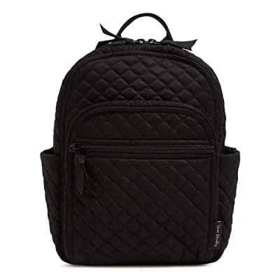 Vera Bradley Small Cotton Backpack Book Bag for Women, Black Recycled Cotton, One size