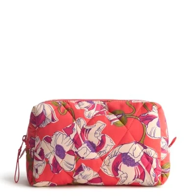 Vera Bradley Women's Featherweight Medium Cosmetic Makeup Bag, Swirling Poppies, One Size