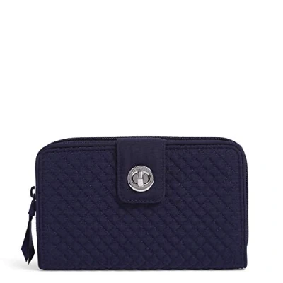 Vera Bradley Women's Microfiber Turnlock Wallet with RFID Protection, True Navy, One Size