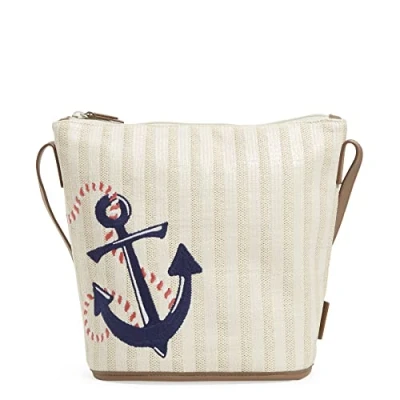 Vera Bradley Women's Straw Bucket Crossbody Purse, Regatta Anchor Navy, One Size
