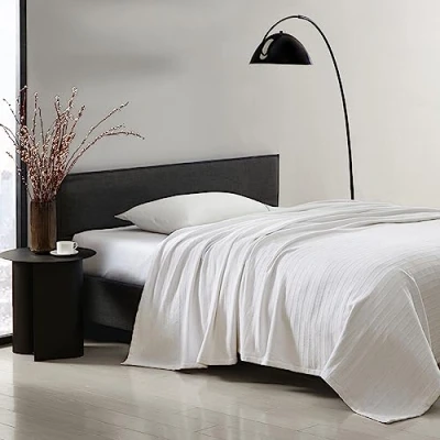 Vera Wang Blanket Designer Cotton Bedding, Medium Weight Home Decor for All Seasons, King, Over Rib White