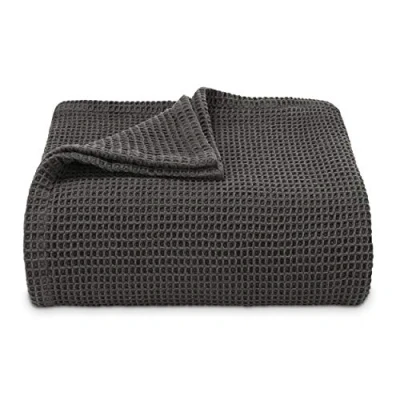 Vera Wang King Blanket, Luxury Cotton Bedding, Super Soft Essentials with Waffle Weave Knit (Waffleweave Charcoal Grey, King)