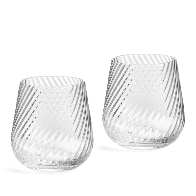 These Vera Wang Swirl Tumbler glasses bring elegance to your everyday. Inspired by Vera Wang's iconic style of fabric layering, these tumblers feature a distinct swirl optic effect. Each piece is handmade in crystal and comes packaged in a Vera Wang gift box, making it a perfect gift or a luxurious addition to your own collection.