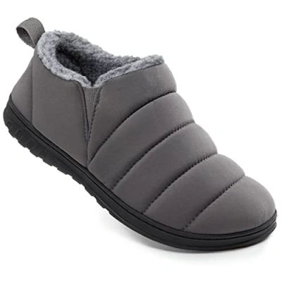High-quality Material: Durable, recycled P.E.T. ripstop quilted upper designed with down insulated snow shoes in mind. Easy to maintain, hand and machine washable Handsome Easy-wear: Medial dual elastic gores complete with pull straps make it an easy-to-wear slipper that's as comfortable as it is stylish. Your new go-to in your fall and winter footwear collection Comfortable Wearing Experience: Premium sherpa lining keeps your feet cosy and dry. Features an ultra comfortable memory foam footbed and supportive EVA midsole. Walkable comfort for long days at home Indoor & Outdoor Choices: Anti-skid rubber outsole provides extra grip so you can take on whatever the day throws at you. Whether you're hanging out on a Sunday morning or stepping out to walk the dog, the VeraCosy is your go-to slipper for nonstop cosiness Size Tips: Available in your choice of black, dark grey and navy blue, making them perfect gift choices. Product designed and quality inspected in the UK, with a 24/7 UK-based support team ready to take care of all your after-sale needs. We recommend ordering one size up for the most comfortable and flexible fit, especially if you are between sizes (e.g., 7.5, 9.5, 11.5)