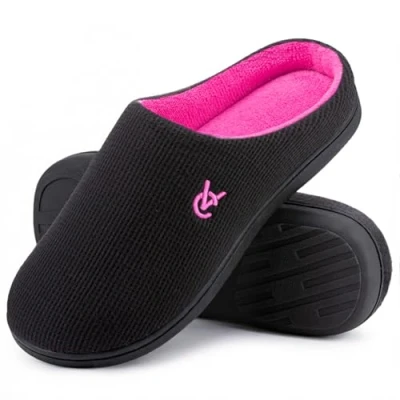 Chic Two-tone Style: With the vibrant colour-block design and eye-catching brand logo, these slippers elevate both style and brand appeal. The classic slip-on design further makes them easy to wear Comfortable Materials: The breathable waffle knit upper, combined with soft coral fleece lining, keeps your feet warm and cosy. It also wicks away moisture, ensuring your feet stay dry and fresh High-density Memory Foam: Featuring upgraded high-density memory foam, these house shoes provide exceptional support and stability. Slip them on, and it feels like walking on clouds Durable & Non-slip Outsole: The anti-skid TPR sole ensures confident walking both indoors and outdoors. When wearing these slippers at home, they help prevent slips and falls while going up and down stairs Great Gift for Her: Packaged in boxes, our shoes are a great gift choice. Bold yet classic, our colour palette caters to diverse tastes, making them perfect for the woman you love on any special occasion