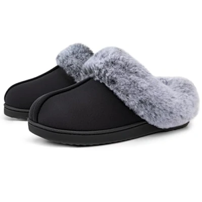 Size Tips & Guidance: These slip-on slippers are padded with high-density memory foam for a cute and cosy wear and might feel snug at first - just give them a couple of days to break in. If you are between sizes (eg. 6.5, 8.5, 10.5) or prefer to wear socks, please get half size up for a better fit Classic Design: Soft microsuede upper enhances the comfort and warmth for your feet in cold winter. Hand and machine washable. Classic slide with low heel style matches well with your loungewear, pajamas, or robes Warm & Cozy: Trendy & Intimate Faux Fur Collar feels like hugs on your feet. The polar fleece lining not only confirms the warmth but wicks moisture away to keep your feet from stuffiness. Enjoy the cushy and fuzzy slippers whether you are bare feet or wearing socks Indoor & Outdoor: Durable Rubber Sole is really flexible that will tolerate wet and cold floor. The hard sole offers traction and incorporates forefoot flex grooves for comfort. Slide into them for casual daytime wear from bedroom to briefly outside the house Memory Foam Footbed: Memory Foam Footbed fits to the contour of your feet and makes you feel like walking on the soft pillows. Extra shock absorption EVA foam further enhances stability for your each step