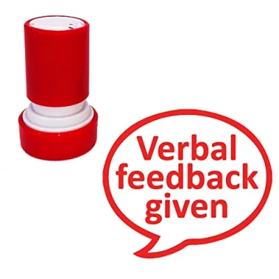 Verbal Feedback Given. (Red Ink) Self Inking Teacher Stamp 22mm. Reinkable^