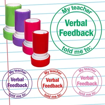Verbal Feedback My Teacher Told me to: Self Inking School Stamp. 22mm Reinkable (Red^)