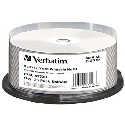 Verbatim 43738 25GB BD R SL Printable 25 Pack Spindle