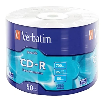 50 Pack Branded Colour Wrap of blank CD-R's 700 MB capacity, 52x speed The white surface on these CDs provides extra protection for the label side of the disc this coating can be written on with a CD/ DVD marker pen Long Lifetime: long-term safe and secure storage of your important files, precious photos, videos and documents, dust and water resitant and can withstand wide changes in temperature and humidity Verbatim's wrap packaging contains less plastic and materials than other types - 100% of it can be recycled