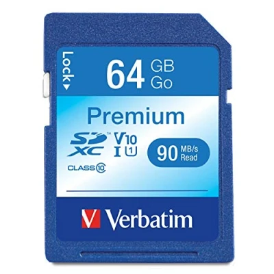 Premium SDXC memory card. Ideal for professional digital SLR cameras. UHS-I Speed Class 1 (U1) for 1080p Full HDvideo recording and burst photography. Read speed: up to 45 MB/s. Compact physical size: 32 x 24 mm. Capacity: 64GB. Colour: Black.