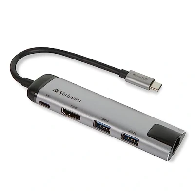 - Get all your gadgets up and running with this Verbatim 5-port USB Type-C hub - Plug in your mouse, keyboard, or even webcams using the two USB 3.0 ports - With a transfer rate of up to 5 Gbps, you can back up your hard drive in no time - The USB-C port with Power Delivery keeps your devices charged and ready to go - Watch your favourite shows in stunning 4K quality with the HDMI port - The Ethernet port gives you reliable internet access for browsing or streaming