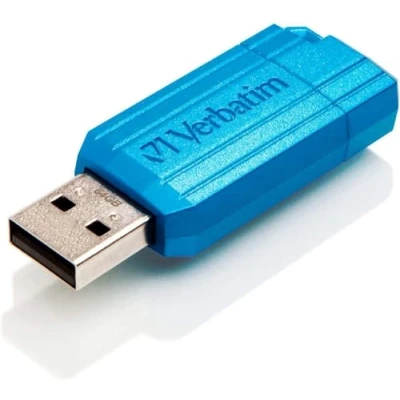 Verbatim PinStripe USB flash drive 64GB 2.0 memory stick for laptop notebook ultrabook TV car stereo data with sliding mechanism carribean blue
