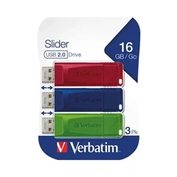 Verbatim Slider USB flash drive multipack 16GB 2.0 3x memory stick laptop notebook ultrabook TV car stereo data with sliding mechanism red blue green