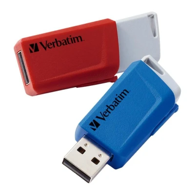 Verbatim Store 'n' Click USB stick 2x 3.2 Gen1 32GB memory with locking mechanism 3 external storage for laptop notebook and co up to 5 Gbit/s red blue